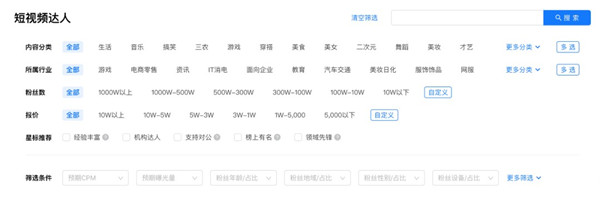 針對訴求不同、合作意向不同的客戶,磁力聚星可在不同維度上滿足客戶的篩選推薦需求。例如對于內(nèi)容合作方向及預(yù)算相對明確的客戶,磁力聚星支持客戶通過達人廣場豐富的標(biāo)簽來篩選達人。