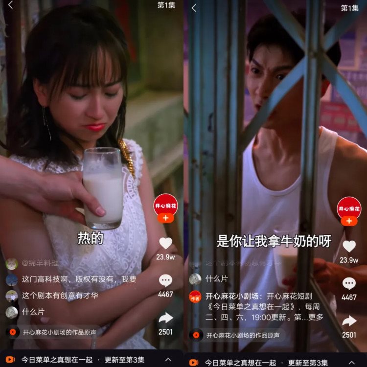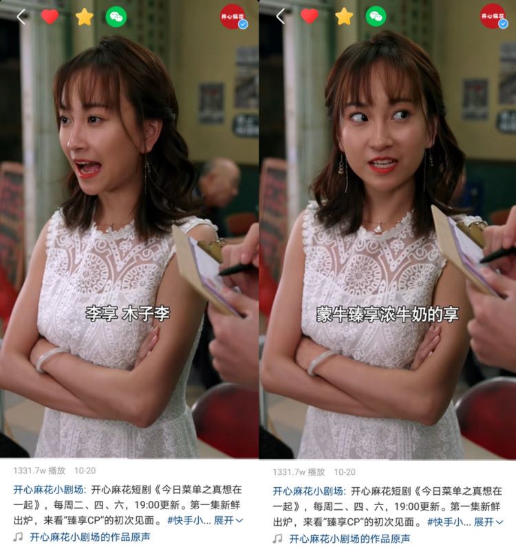 10月20日-11月21日期間,《今日菜單之真想在一起》在快手小劇場上線。該劇由金牌喜劇IP開心麻花團隊制作,在美食題材中融入喜劇元素,講述都市男女的甜寵愛情故事。作為快手與開心麻花聯合出品的精品定制短劇,雙方在內容和形式上加以創新,以爆款內容+豎屏短劇為品牌創造全新植入渠道。