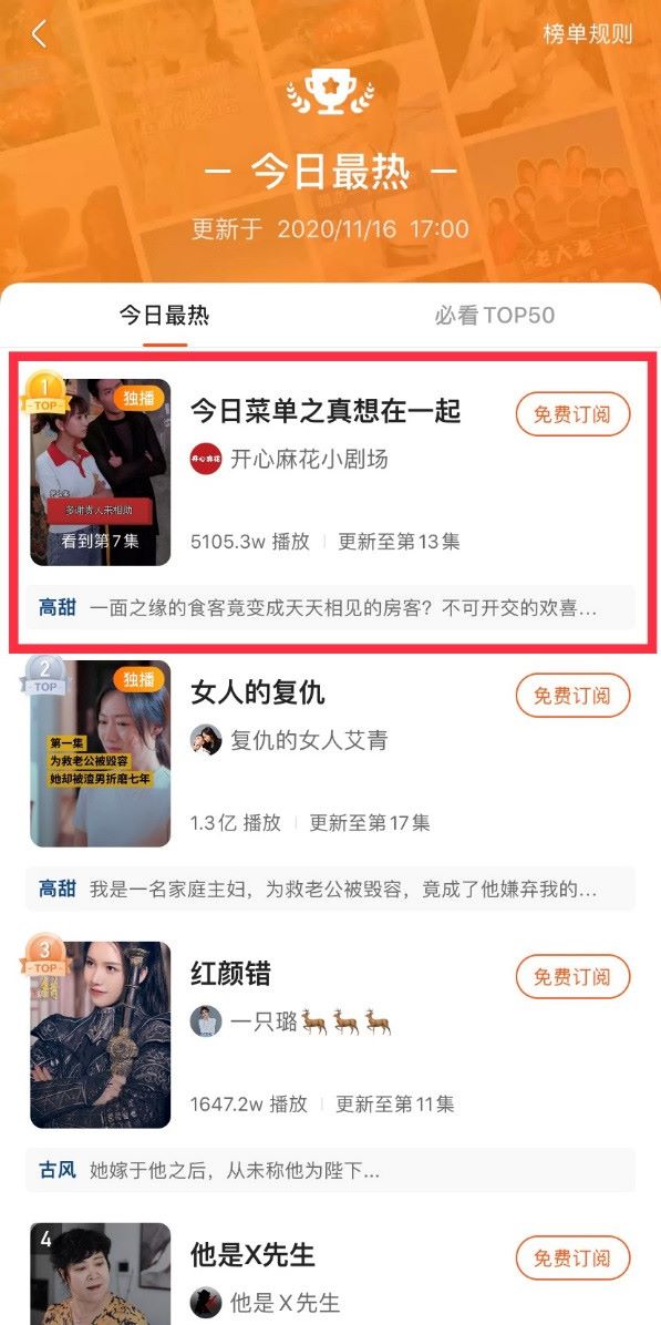 目前,《今日菜單之真想在一起》更新到第13集,累計播放量已達5105w,位于快手小劇場熱播榜首位,品牌曝光與轉化效果突出。