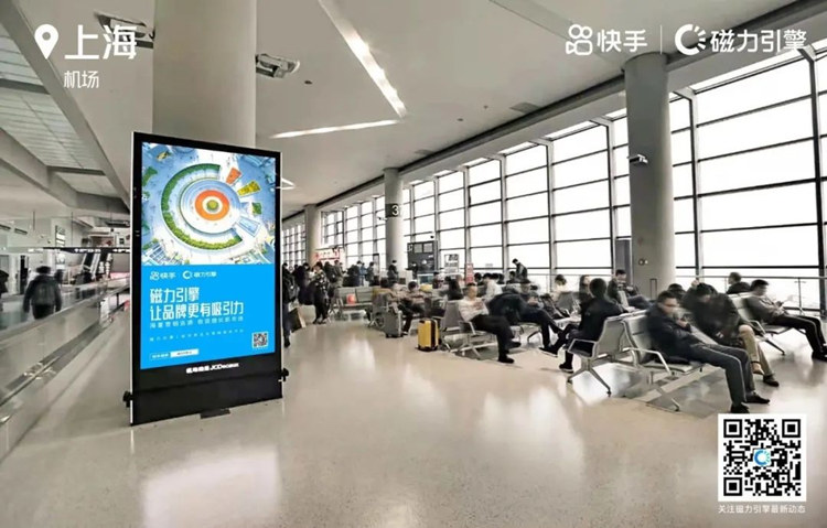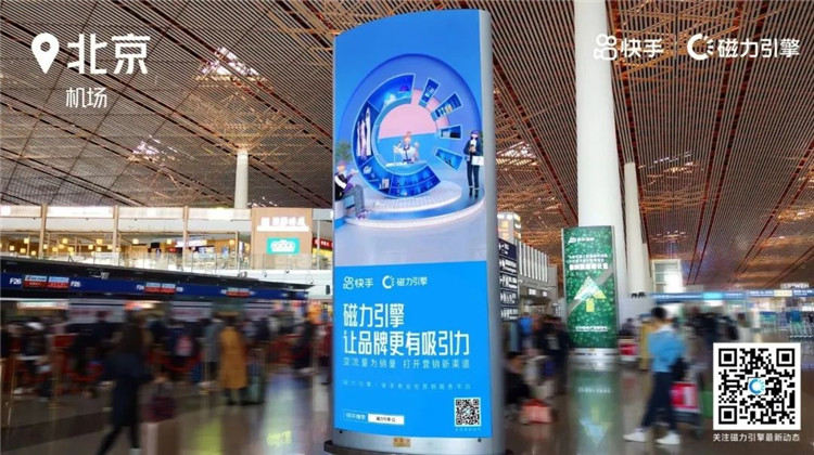 為了讓更多品牌和用戶感知到這種吸引力,快手磁力引擎還進行了一輪新的廣告投放。通過新市場、新玩法、新渠道來詮釋“磁力引擎,讓品牌更有吸引力”,并在北京、上海、杭州、深圳完成公交、機場出街。