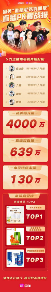 風口上的電商直播,已是11.11的營銷標配。如何在喧囂的購物狂歡中突圍?如何滿足不同用戶的真實需求?如何通過直播傳遞品牌理念?這次快手磁力引擎攜手國美,以“直播PK+話題造勢”交出一份滿意的答卷——國美通過快手“誰是老鐵真朋友”直播PK賽,成功點燃 “真安心、真低價、真劃算”的三昧真火,在這個搶奪電商流量市場的關鍵節點中,打造了一場銷量與聲量雙贏的營銷事件。