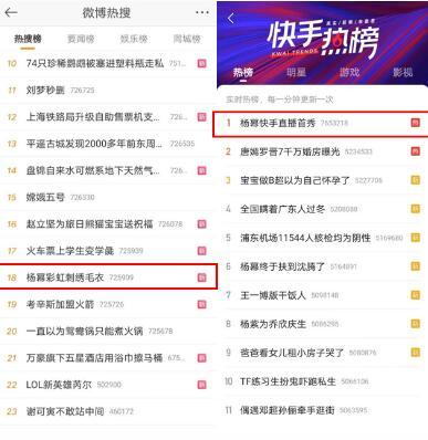 在掃樓期間,楊冪也在其快手賬號(快手ID:2115776392)進行全程直播,吸引了眾多網友的關注。1小時的直播,直播間總觀看量達1059.9W,總互動量3415.7W;在快手站內,#楊冪快手直播首秀#話題登上快手當日熱搜榜第一名,總曝光量達2114W;#楊冪終于扶到沈騰了#登上快手熱搜榜第三名,總曝光量達1674W;直播全網獲億級曝光,微博熱搜登上Top18,知乎熱榜Top23,數據喜人。