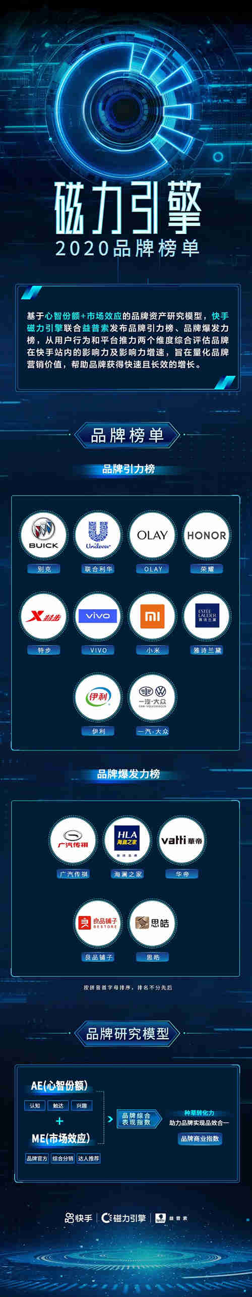 11月30日,快手2020磁力大會在北京召開。會上,快手聯合益普索發布了“2020磁力引擎品牌榜單”,借助雙方優勢共同回顧2020年各大品牌的快手營銷表現,并以可量化的手段,幫助品牌在社交媒體投入不斷加大的當下,衡量營銷的綜合表現變化,更好地占領消費者心智,幫助品牌獲得快速且長效的增長。