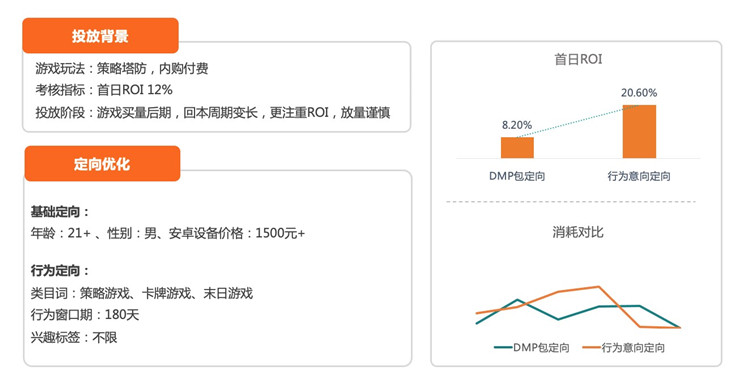 目前,“行為意向”功能已向游戲行業客戶全面推行,以角色扮演、策略游戲等題材案例為代表,客戶投放消耗漲勢明顯。