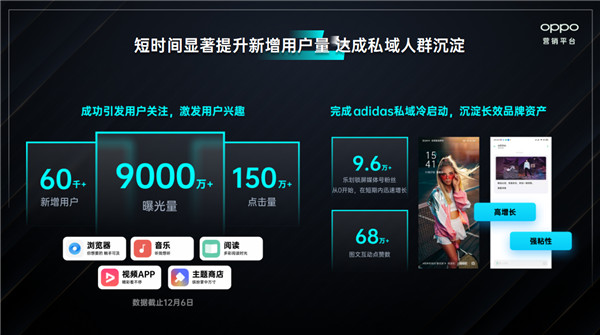 最終,OPPO營銷僅用20天時間,助力阿迪達斯收獲近10萬的粉絲,整體獲得6萬以上的新增用戶。