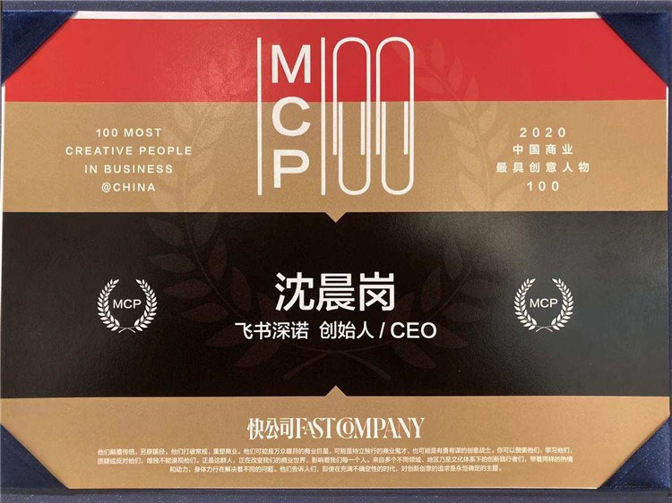 此前,飛書深諾集團創始人兼CEO沈晨崗已獲評《FastCompany》2020中國商業最具創意人物100。