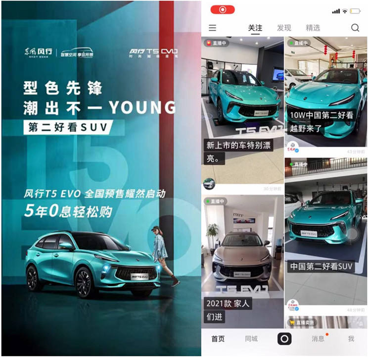 12月14日到17日,東風(fēng)風(fēng)行T5 EVO牽手快手快說(shuō)車(chē)“豪橫購(gòu)車(chē)季”啟動(dòng)預(yù)售首發(fā),這是東風(fēng)風(fēng)行和快手的首次破冰合作,也是快手“豪橫購(gòu)車(chē)季”商業(yè)化首次亮相。截止17日活動(dòng)結(jié)束,“東風(fēng)風(fēng)行x豪橫購(gòu)車(chē)季”活動(dòng)總曝光量突破3700w,直播總觀看人數(shù)達(dá) 195w+, 直播總點(diǎn)贊人數(shù) 45w+,線索收集總數(shù)6500+,品牌官方賬號(hào)漲粉數(shù)12000+,可謂成績(jī)喜人。