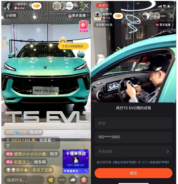 本次“東風(fēng)風(fēng)行x豪橫購(gòu)車(chē)季”活動(dòng),快說(shuō)車(chē)攜手“麥浪哥哥”、“牛哥說(shuō)車(chē)”、“二哥評(píng)車(chē)”、“車(chē)哥測(cè)評(píng)”及“車(chē)探彭宇”,以進(jìn)明星4S店探訪的形式策劃了5場(chǎng)品牌專場(chǎng)直播。而根據(jù)主播的特點(diǎn)及對(duì)東風(fēng)風(fēng)行T5 EVO不同的“真情實(shí)感“,他們的直播內(nèi)容呈現(xiàn)出多樣化、個(gè)性化、互動(dòng)率高、轉(zhuǎn)化率高的特點(diǎn)。