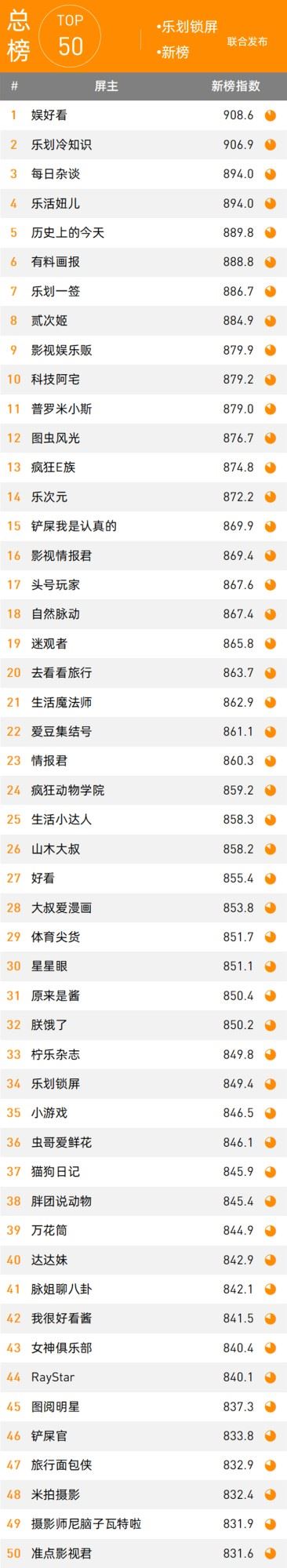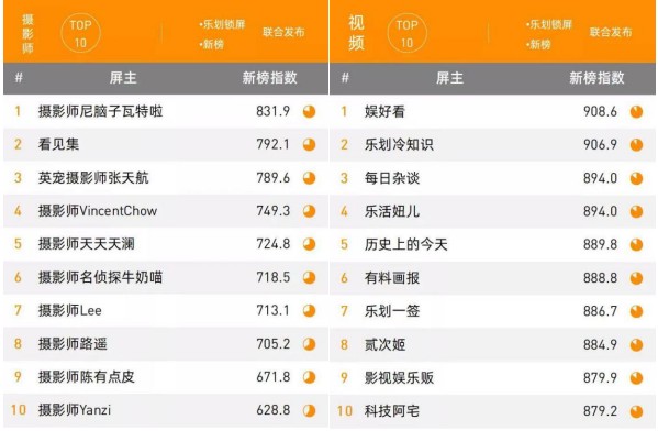 12月發(fā)布的《樂劃鎖屏屏主先鋒榜》,綜合內(nèi)容質(zhì)量、更新頻次、粉絲增長速度、用戶互動(dòng)頻率等多方面數(shù)據(jù),從不同維度展現(xiàn)了內(nèi)容創(chuàng)作者的影響力。