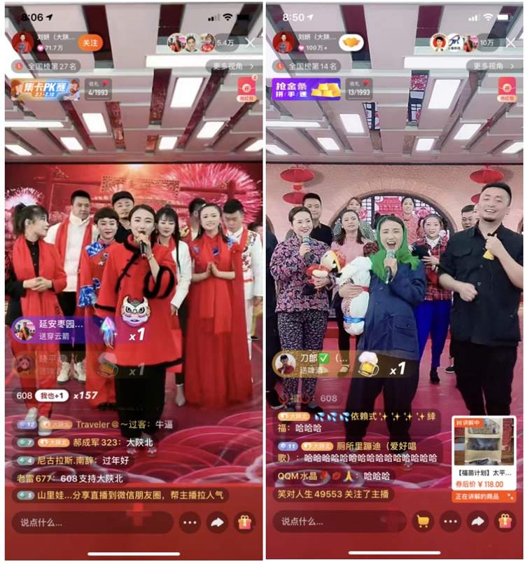 當(dāng)天晚上8點,在快手鄉(xiāng)村振興官劉妍的直播間,一場展現(xiàn)陜北勞動人民生活變遷的大陜北春晚就此拉開了帷幕。