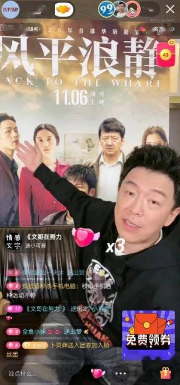 大量的影視宣發已經選擇與快手深度合作,例如電影《風平浪靜》在點映會結束后,黃渤和李雪琴來到快手直播間,和網友們坦誠分享心路歷程。 短視頻+演員導演直播的總觀看人數達到1105.2萬,點贊數1465.7萬??焓钟脩粢脖憩F出了極大的觀影興趣,不僅在直播間評論區刷起了電影和“1106”(上映日期),還搶光了100萬電影代金券。