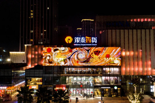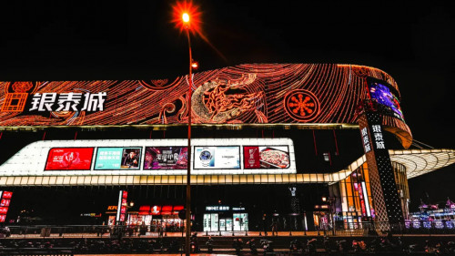寧波銀泰環球城是銀泰商業全國首座環球城項目,其外立面的面積超2000㎡,是此次項目外立面中面積最大的商場。