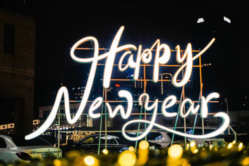 慶春店則選擇了以“HAPPY NEW YEAR”為主題的燈飾發光裝置。