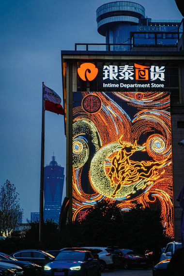 燈飾畫獨特的美感,為江東銀泰添加了一分新春氛圍感,卻又不失高級感。