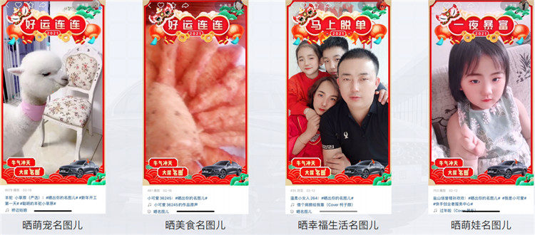 提及挑戰賽,充滿趣味性的魔表必不可少。快手磁力引擎為北京現代定制新春魔表,將全新一代名圖與祈福習俗有機結合。承載著對美好生活向往的專屬魔表,契合快手用戶曬生活、玩互動、渴望儀式感的心理需求,每條UGC作品都成為強化品牌與用戶連接的紐帶,既有效深化北京現代的品牌記憶,也為深度交互增添無限趣味。