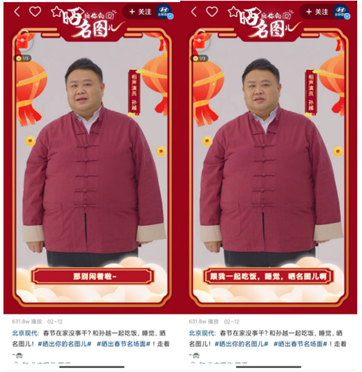 挑戰賽的快速引爆,離不開擁有強大號召力的明星與快手達人。常登春晚舞臺的相聲演員孫越,率先通過@北京現代 號召用戶拍攝趣味視頻、曬出名圖兒。孫越真實自然的演繹,為北京現代與用戶交流提供場景,有效提升全新一代名圖曝光及活動宣傳熱度,制造品牌出圈可能性。