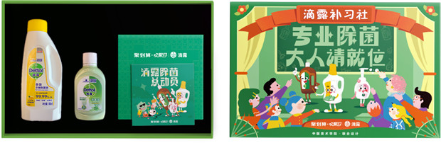 除了主題短片和系列海報外,這次天貓歡聚日滴露還聯(lián)合了中國美術(shù)學(xué)院共同設(shè)計(jì)的了一款“專業(yè)除菌大人補(bǔ)習(xí)社”限定禮盒作為促銷禮贈。禮盒外觀是手繪風(fēng)格的除菌教室,視覺化呈現(xiàn)了“滴露補(bǔ)習(xí)社“的補(bǔ)課場景,仿佛是主題短片中王建國進(jìn)入補(bǔ)習(xí)社之后的延續(xù)。