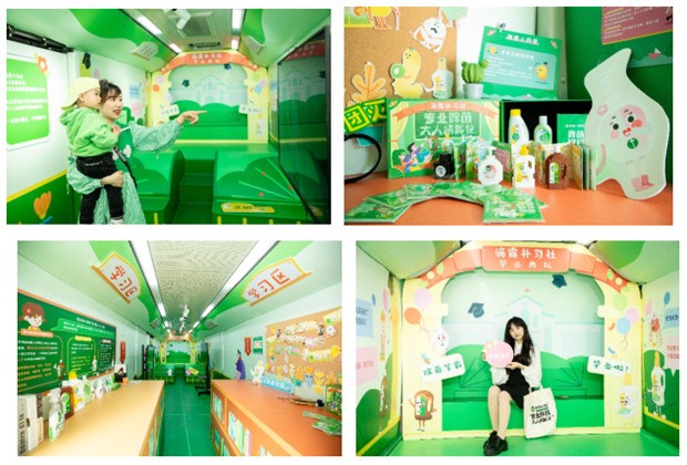 巴士內(nèi)部的補(bǔ)習(xí)教室中設(shè)置了從“入學(xué)“到”畢業(yè)“的互動環(huán)節(jié),一環(huán)扣一環(huán)的互動鏈路,將品牌利益點(diǎn)軟性植入其中,讓消費(fèi)者在沉浸式的課堂氛圍中了解到消毒除菌的重要性,也進(jìn)一步提升了消費(fèi)者對品牌和產(chǎn)品的認(rèn)知和好感度。