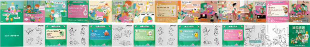 既然是補(bǔ)習(xí)社,當(dāng)然要有課本——禮盒內(nèi)除了滴露產(chǎn)品的迷你裝之外, 還配贈了一本“滴露總動員”除菌故事繪本,繪本正面是手繪連環(huán)畫,生動講述了一個除菌小故事。繪本背面是常見細(xì)菌和病毒的介紹,還設(shè)置了DIY填色區(qū),消費(fèi)者在動手涂鴉的同時能加深對除菌知識的印象。