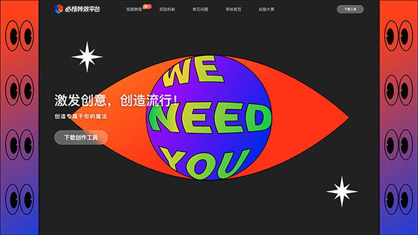 就在前不久的2021快手光合創作者大會上,快手特效開放平臺2.0正式上線啦,而且還更名為必揚特效平臺(Beyond Effect)。敲黑板,注意!作為本次大賽的官方指定平臺,特效師們需要在平臺官網下載創作工具,并提交作品。事實上,快手特效開放平臺上線至今,注冊用戶已經為快手提供了超過18000款魔表素材,每天還有超過一千萬的用戶在快手的短視頻、直播、快影、一甜相機、快手海外版等APP上使用這些創意素材。