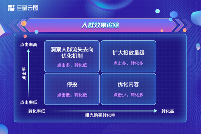 通過(guò)人群分層模型,巨量云圖重點(diǎn)分析O、A1、A2、A3幾層用戶群體特征,以此來(lái)洞察品牌各階段人群的潛力,監(jiān)測(cè)人群健康度,并通過(guò)流轉(zhuǎn)分析深度剖析轉(zhuǎn)化動(dòng)機(jī),進(jìn)一步加速行動(dòng)轉(zhuǎn)化。