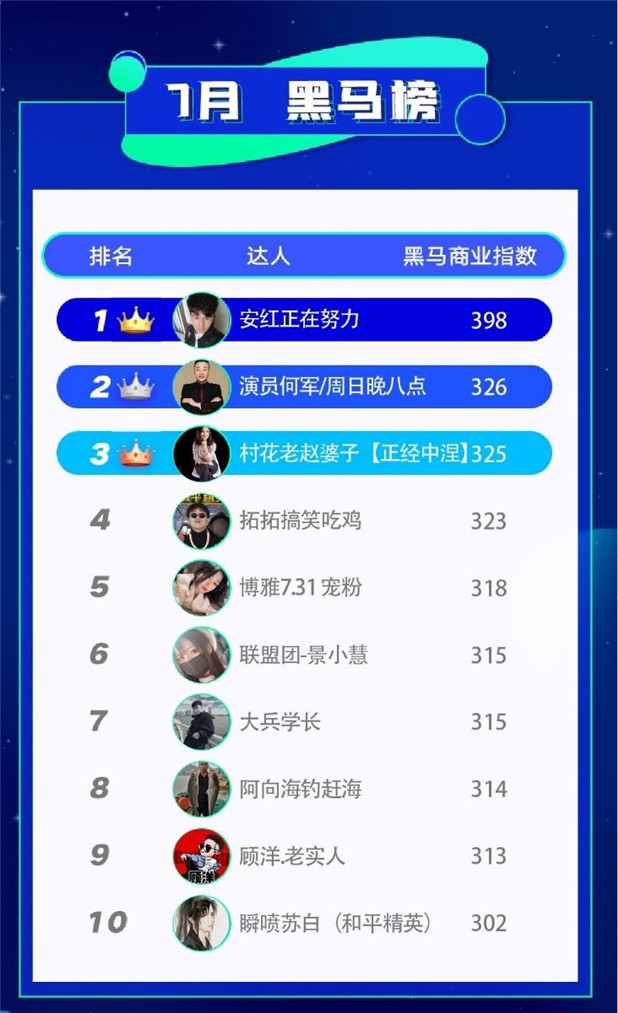 黑馬榜的第二名和第三名分別由分享熱點話題的演員何軍,和演繹鄉(xiāng)村生活的村花老趙婆子收入囊中。這也從側(cè)面反映了快手用戶們既愛看家長里短,也關(guān)心社會時事,不同類型的內(nèi)容都能在快手內(nèi)容生態(tài)中擁有一席之地。