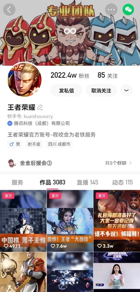 作為中國自研產品的代表之一,《王者榮耀》超出產品本身,在文化合作中不斷創新,遇見敦煌,遇見神鹿,以及剛發布的遇見胡旋,都在文化創新的領域中探尋更多可能。在快手,《王者榮耀》官方賬號也以超2000萬的粉絲量形成了高影響力私域陣地。