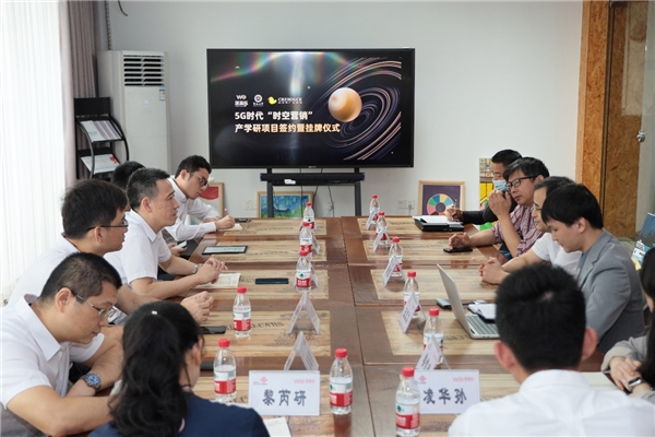 參觀完畢,三方代表就本項目戰略主題“5G時代時空營銷”舉行簽約儀式動員會議,各代表在會上分別發表講話。