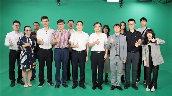 會議結束后,三方代表前往虛擬演播廳舉行簽約儀式并進行高清錄制,簽約儀式上,各代表領導及現場嘉賓合影留念,“5G時代時空營銷”產學研項目簽約儀式取得圓滿成功。
