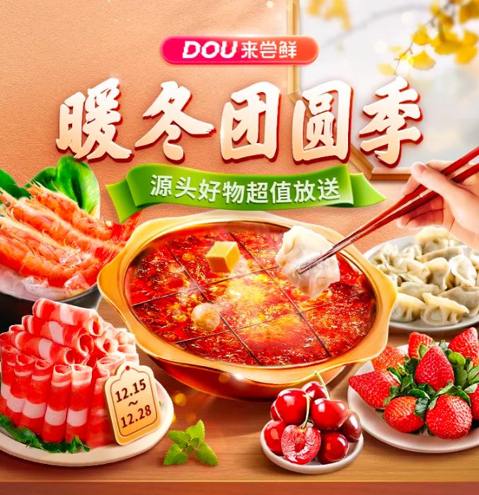 冬至將至,餃子湯圓、牛羊肉、車厘子、草莓、橙子等食物走俏。為助力商家抓住年末黃金檔口,抖音電商將于12月15日至12月28日,啟動「DOU來嘗鮮」活動,通過「冬至品類日」、「短視頻話題挑戰賽」、行業重點直播間、作者任務等玩法,給到商家、達人豐富的資源扶持,助力生鮮行業商家實現年底生意增長。
