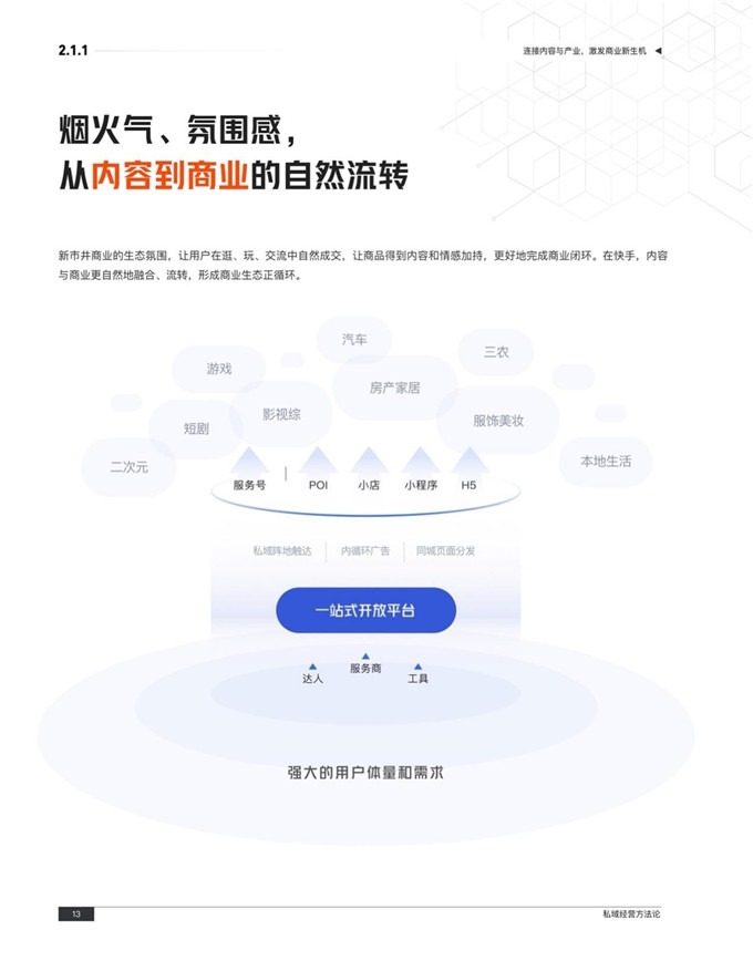 私域有力量,更有方法。白皮書指出,私域的價值開發,必須通過公私域的打通,幫助創作者和經營者實現深度商業價值的高效變現和閉環,而這正是快手正在做的事——通過產品、運營、生態的開放和創新,打通私域運營全鏈條,并實現在各行各業的落地。