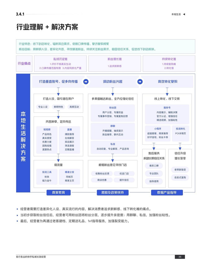 針對本地生活領域私域沉淀難、粉絲增長難、持續轉化難等痛點,白皮書認為,經營者需要用打造差異化人設、真實流行的內容等手段吸引粉絲關注,再通過粉絲分層、老客建檔、定期送禮品等服務加強裂變能力。