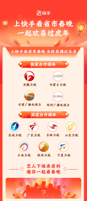 作為“短視頻+直播”平臺,快手在此次虎年春節期間將與衛視春晚建立多重內容合作形式。
