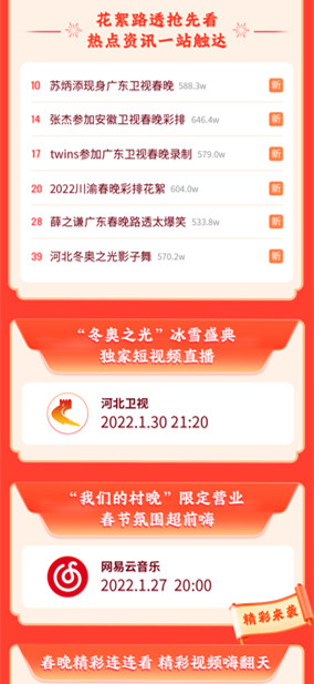 基于各大衛視的選擇,快手今年將繼續深入探索大小屏融合傳播模式,增強“快手看春晚”的用戶心智,助力春晚在移動小屏端的傳播渠道拓展。10家省市春晚以及河北“冬奧之光”盛典將在快手同步直播,讓在外奔波或者受疫情影響不能回家團聚的人,也能和家人們同步看春晚。快手還上線了預約春晚直播的H5活動界面,用戶可以一鍵預約,及時觀看,無需擔心錯過期待的節目。