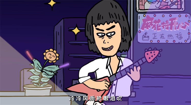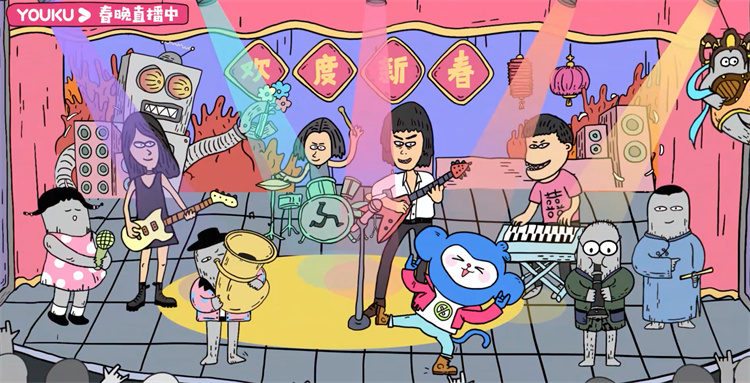 優酷侯三迷領銜出演,將「失戀、社恐、過勞」年輕人面對的三大煩惱一一還原,而在每個陷入 emo 的時刻,新褲子樂隊都會攜經典曲目上演反轉劇情,與侯三迷同框出鏡,用音樂傳遞快樂。盡管已走過 25 年的新褲子樂隊本身并不年輕,但無論是廣為傳唱的「你你你你要跳舞嗎」,還是柔情的《你都忘了你有多美》,他們歌曲中的熱情與瀟灑,擁有一種永遠青春的姿態,不僅抓住了年輕人的心,同時也給予這代人積極向上的能量。生動的動畫演繹,匹配發人深省的歌詞,「新酷子」發揮雙方的優勢,從反轉小劇場再到最后的「春晚」演出,為年輕人解開 emo 情緒的束縛。