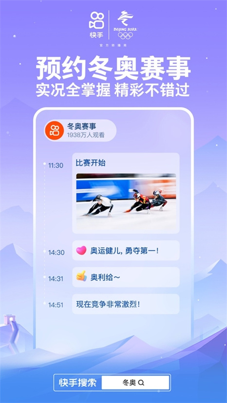為了真正做到全景式呈現冬奧,在冬奧會期間,快手將通過點播的方式,全程播出奧運會所有精彩賽事,并持續推出精彩賽事相關的自制內容,包括冠軍空降做客、明星跨界助力、評論大咖解讀以及運動員精彩短視頻合集、奧運冠軍現場花絮、賽事內容混剪、賽場內外話題熱榜等各類用戶喜聞樂見的內容,以符合短視頻、直播時代用戶欣賞習慣的“短平快”內容,全方位滿足各類觀眾快速了解賽事狀況、賽場內外花絮等多元化的需求。