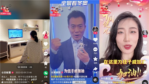 中國短道速滑的隊友們也在快手為任子威加油助威。在任子威獲得短道速滑男子1000米冠軍后,短道速滑世界冠軍韓天宇在快手直播時談到“任子威把狀態發揮到了極致”; 短道速滑奧運冠軍張會表示“任子威進步這么快是因為擁有不服就干的性格”;在任子威未進短道速滑1500米決賽時,短道速滑隊隊員劉秋宏則在短視頻中鼓勵任子威,“子威放平心態繼續沖!”