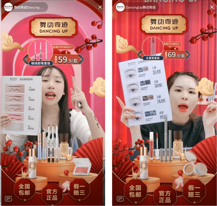 春節期間自播和達播如何互相驅動?常州詩唯雅堅持24小時不斷播,為舞動奇跡打造了日不落直播間。常州詩唯雅對直播間進行視覺改造,背景增加祥云動態元素,前景增加了中國扇子、千紙鶴等新年元素,營造直播間的春節喜慶氛圍。主播也進行了針對性話術調整,強調春節多倉正常發貨,迎合消費者心理需求,打消春節物流顧慮。