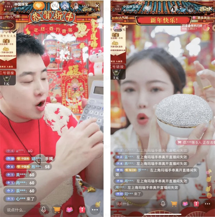 春節期間如何引爆流量?杭州爆紅文化傳媒在服務中國珠寶的過程中,總結了三點經驗:第一,直播間服化道裝修和春節年貨氛圍吸引消費人群。第二,通過引流、福利、承接、爆款的綜合組品撬動更多自然流量,提升轉化數據,實現品帶人、品牌帶人。第三,在關鍵時間節點上做好投放補充數據以及爆品吸引力,將留人能力達到最強。春節期間,中國珠寶環比上個月日均增長200%,月交易額突破1000萬,連續七天交易額每天穩定100萬,后臺投產1:50,綜合ROI投產比1:300。