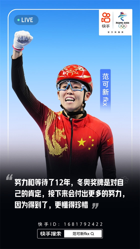 作為北京2022年冬奧會官方轉(zhuǎn)播商,除范可新以外,快手還吸引了眾多運動員用短視頻和直播的方式分享比賽心得,講述背后趣事。隨著北京冬奧進(jìn)行得如火如荼,更多運動員將在快手亮相,也歡迎關(guān)注冬奧賽事、支持冰雪健兒的觀眾上快手追冬奧,感受不一樣的冬奧故事,一起為中國代表團(tuán)加油助威。