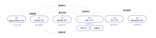 在巨量引擎,主動A3(主動問詢 ask)是鎖定高潛轉化人群的重要指標。主動A3,拆分于巨量云圖O-5A模型(超鏈接https://mp.weixin.qq.com/s/eD1qBWcwSr7SKhXEu3xG_A)中的A3(問詢ask),擬合眾多對于品牌信息有相對行為好感的深度互動人群,數據驗證顯示,相比A3人群,主動A3是更容易被種草和轉化的受眾群體。