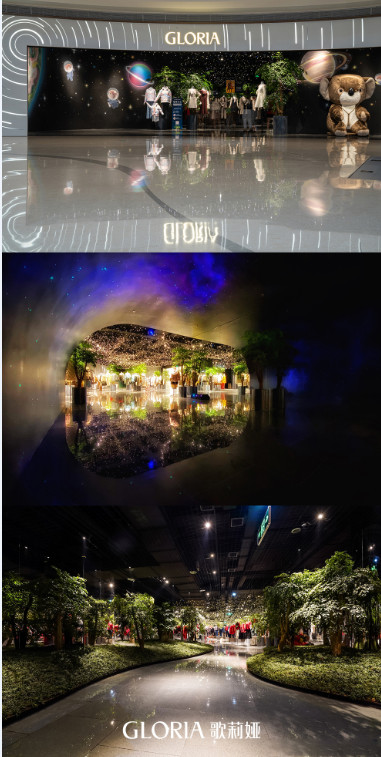 綠野星蹤樹熊夢幻樂園是歌莉婭的主題IP大店,標志性的星空燈、真實綠植、尤加利香氛和獨家IP自然之音……從視、聽、嗅、觸等多個維度,為繁忙的都市人提供一種放松、療愈、旅行式的逛街體驗。