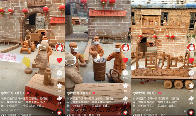 在疫情爆發之初,泥巴哥制作了一條“泥巴城”村民遵守疫情防控的視頻,致敬一線工作人員,并提醒大家出門戴口罩,引發不少人的共鳴,收獲11.7萬點贊。