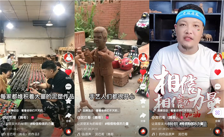 而在泥塑內容之上,泥巴哥拍攝泥塑短視頻改變了自己的命運,更改變了泥咕咕非遺文化傳承方式的真實經歷,也成為品牌宣傳的素材之一。東京奧運會期間,泥巴哥與螞蟻集團合作,借泥塑講述生活賽場的故事,號召大家“相信相信的力量”,實現奧運力量營銷共振。
