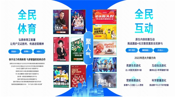 在全民體育主場(chǎng),快手將集結(jié)NBA、杭州亞運(yùn)會(huì)、歐冠、NFL等賽事,通過(guò)賽場(chǎng)直擊、衍生娛樂(lè)綜藝、用戶互動(dòng)活動(dòng)等方式,為品牌提供充分的借勢(shì)營(yíng)銷(xiāo)空間,幫助品牌實(shí)現(xiàn)聲量爆發(fā),快速觸達(dá)大眾圈層。