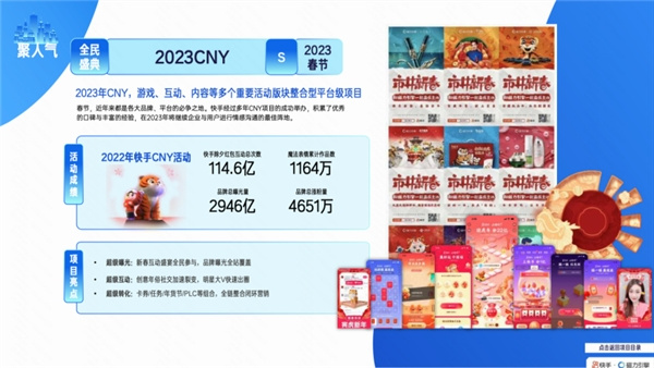 在全民盛典主場(chǎng),CNY、《一千零一夜》等平臺(tái)成熟IP將如約而至。此外,《快手新市井之城》《快手新市井中國(guó)節(jié)》《國(guó)貨發(fā)光》《快手主持人年度盛典》《一拍成名第二季》等項(xiàng)目也將上線,為品牌探索多維度內(nèi)容營(yíng)銷(xiāo)場(chǎng)景。