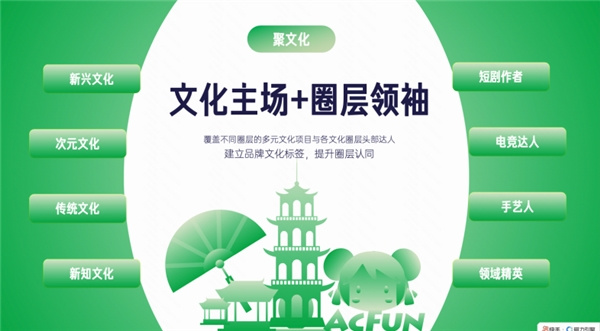 圍繞“聚文化”,磁力引擎搭建了新興文化、次元文化、傳統(tǒng)文化、新知文化四大分會(huì)場(chǎng),開(kāi)啟品牌文化營(yíng)銷(xiāo)新路徑。