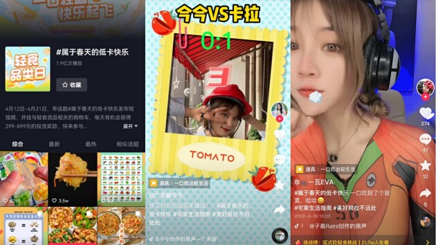 從達人合作階段起,抖in百味賞便打出了#屬于春天的低卡快樂 這一主題,春天作為夏天來臨前的塑形高峰,自帶季節性熱度。