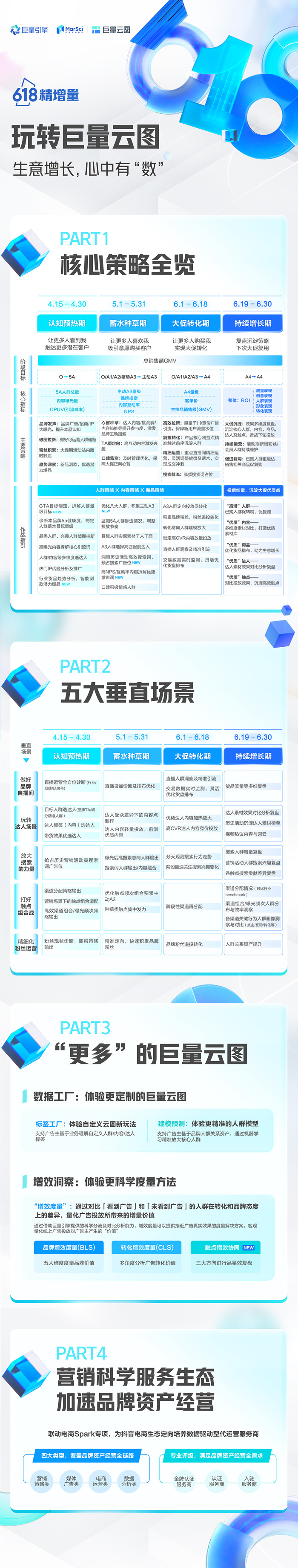 在作戰大圖“任務分解法”的指引下,拿下618不再是玄學,而是一場更具確定性的成長之旅。巨量云圖深挖平臺數據價值,助力廣大商家提前做好全盤規劃,從不同模塊、不同場景分別進行籌備,加速品牌資產經營。接下來,還有系列專場直播課程,敬請期待。(關注巨量引擎營銷科學微信公眾號了解更多)