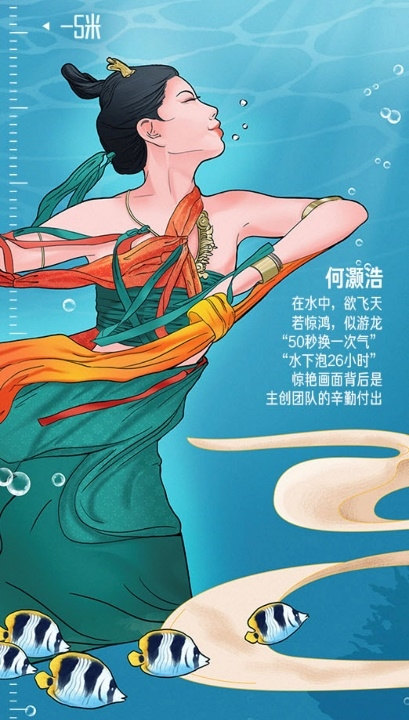 青春的深度在哪里?地平線下5米,舞蹈演員何灝浩在水中翩若驚鴻,動似游龍,而創造驚艷美學體驗的背后,卻是連續在水中泡26小時的辛勤付出;“隧月人生”的辦公室則在地平線下50米,他是開山鑿路修建地鐵、隧道的“穿山甲”,更是大國重器的匠人;海底7000米,蛟龍號潛艇員從深海歸來,刻下令國人自豪的中國深度。